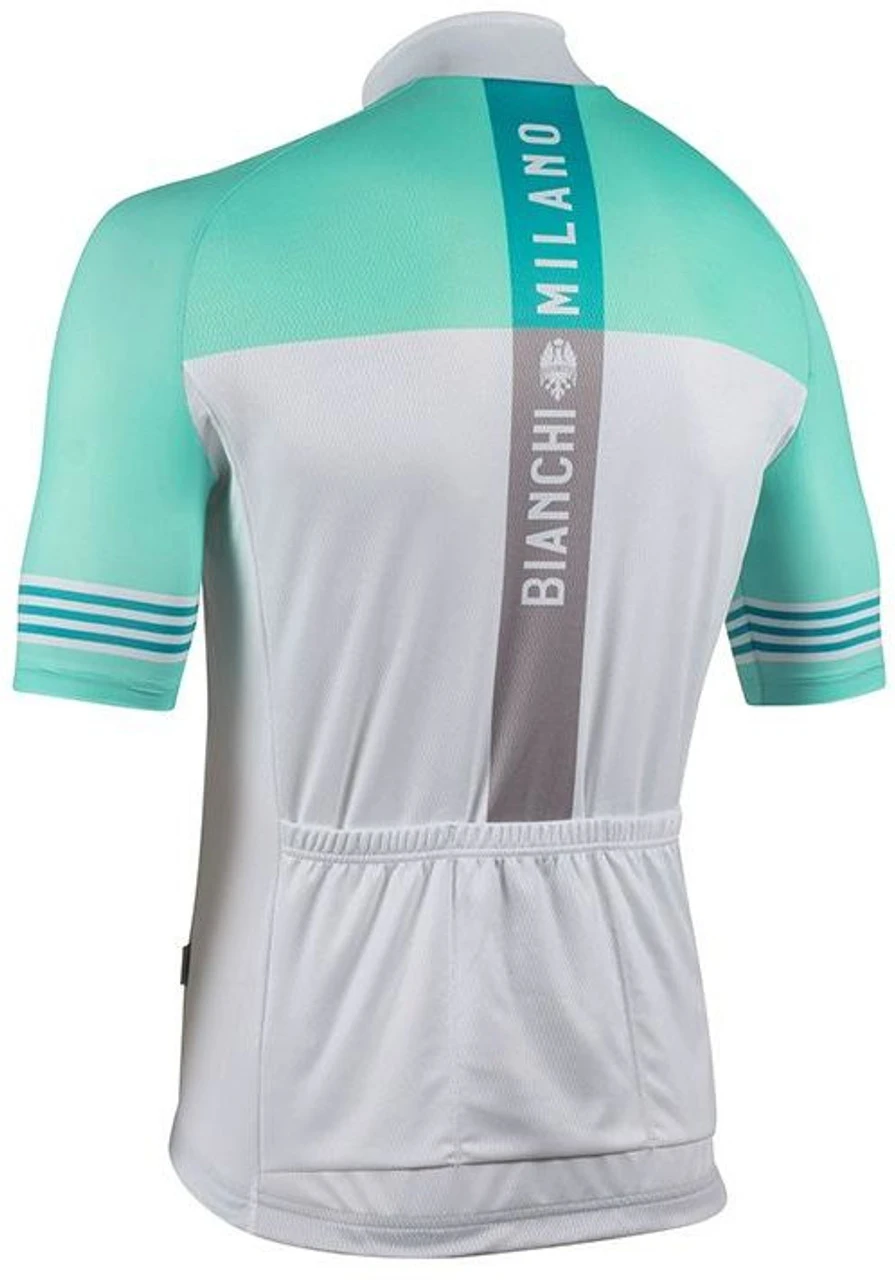 Bianchi Milano Prizzi cycling jersey lets you show your true passion for cycling. Wicking, and breathable, the lightweight fabric offers ultra-soft comfort and moves with your body. The specially treated material also eliminates odors caused by microbes and offers UPF 50+ protection from the sun’s harmful UV rays. Perfect for warm weather riding. Made by Nalini in Castel d’Ario, Italy.