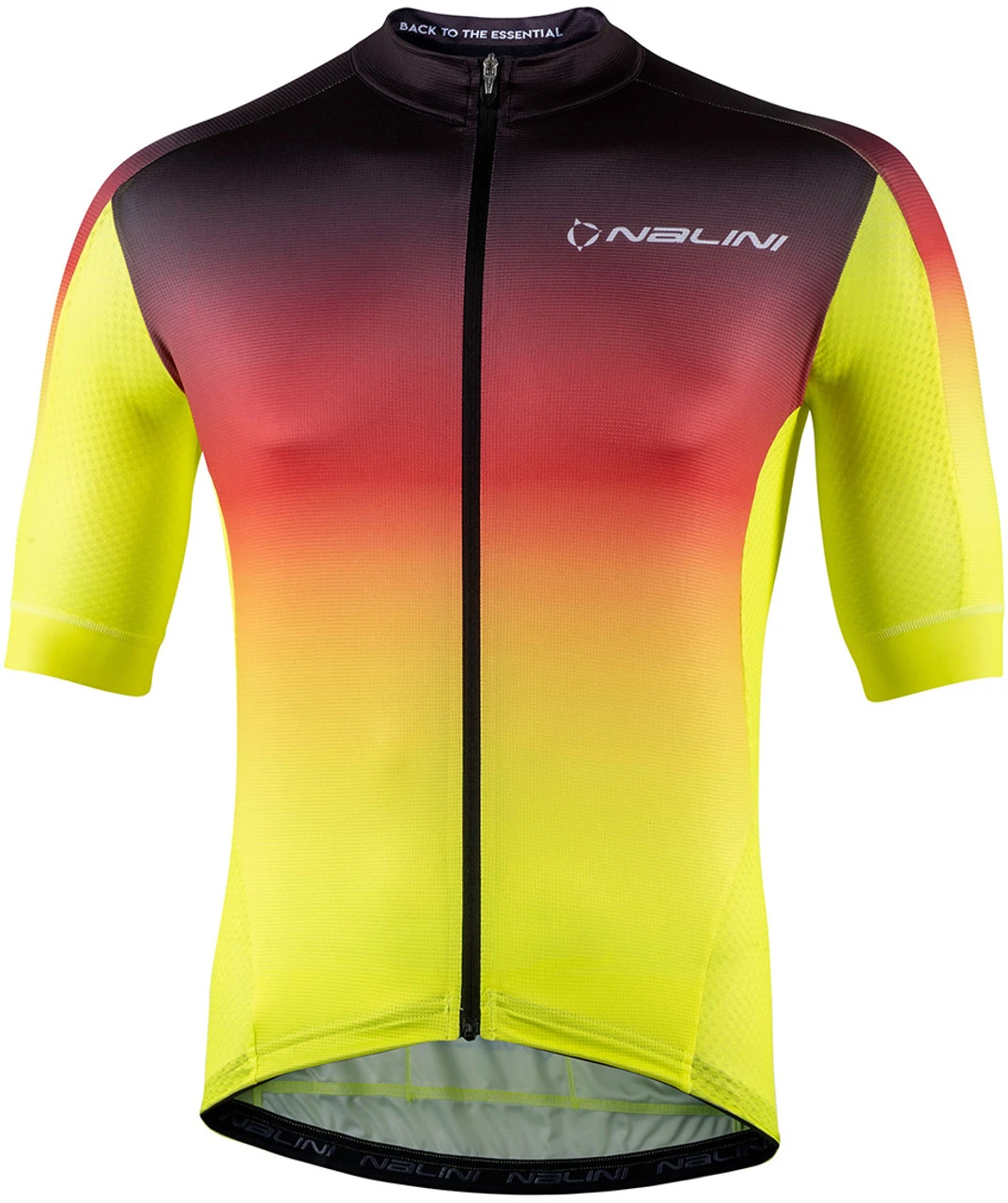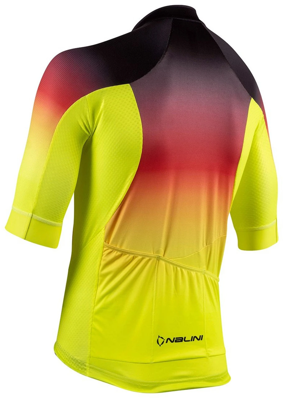 Race-fit jersey made of a semi open-structured elastic fabric for improved breathability. The ergonomic cut at the shoulders ensures freedom of movement and a perfect fit on bike position. The cut of the front panel has been engineered to provide a perfect fit. The textured elastic mesh inserts provide greater breathability, making the jersey ideal for hotter days.