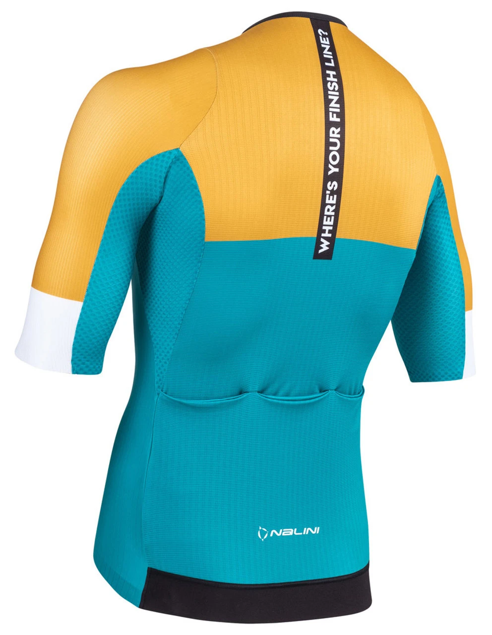 Aerodynamic jersey with striped fabric on shoulder and front panel, this material has a particular soft touch and is has excellent moisture management. A super lightweight fabric is used on the back: it keeps the rider fresh and dry during the warmest days and heaviest climbs.
