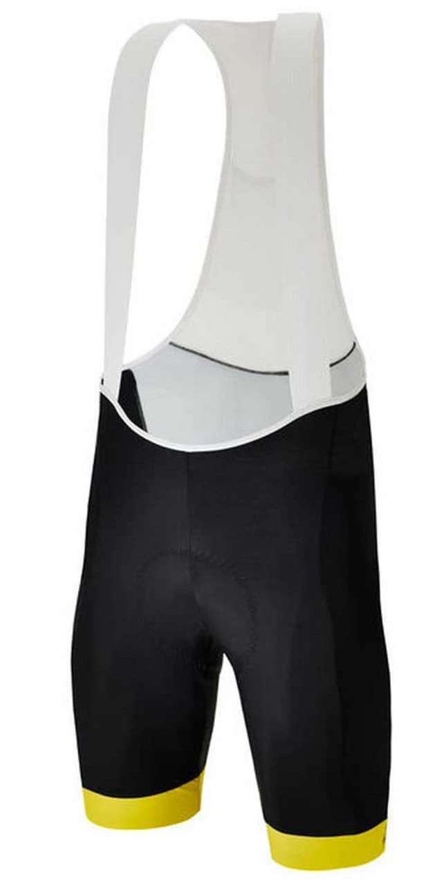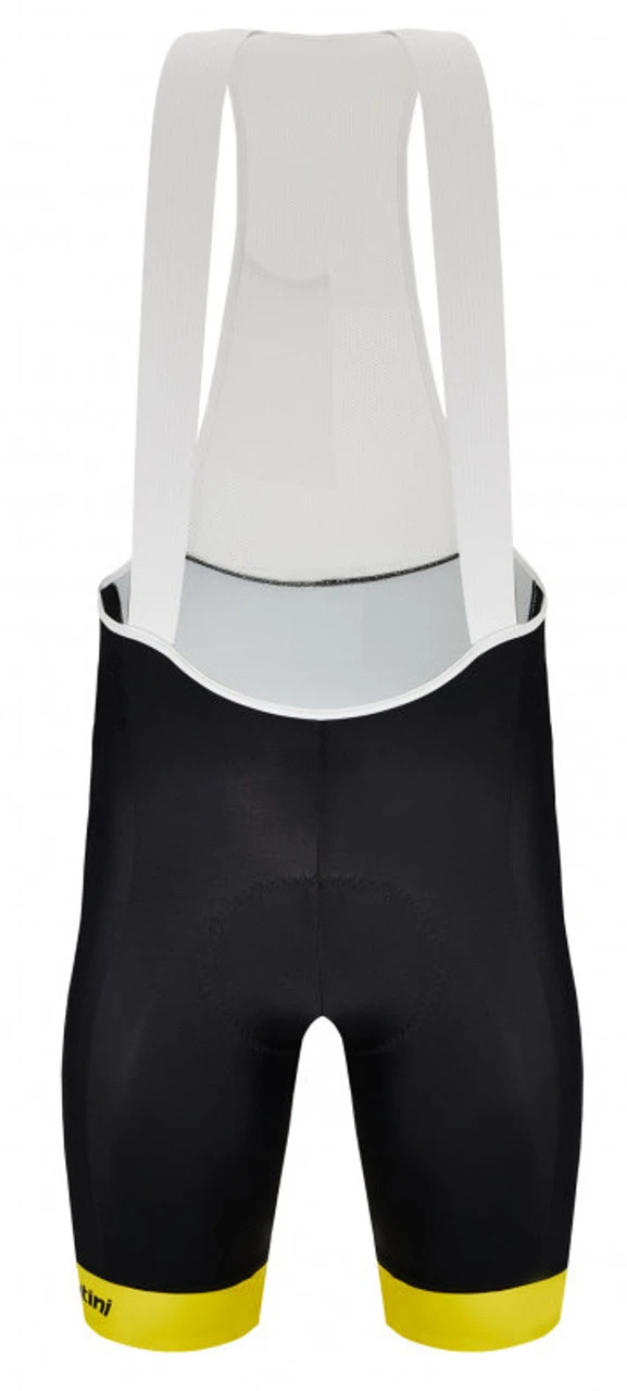 Tour de France Overall Leader official bib-shorts. Made of high elasticity, compact Italian fabric with power compression technology, providing medium compression without being restrictive. Incredibly durable it retains its features through time. Featuring our top of the range C3 chamois, with protective shell, ischiatic shock absorbing gel inserts and ergonomic 3D surface. Elasticated seamless braces on the front to ensure the upmost comfort for every rider and mesh breathable panel on the back. These bib-shorts always stay in position while riding thanks to the durable elasticated leg band with internal silicone gripper. A perfect match to your Overall Leader leader jersey